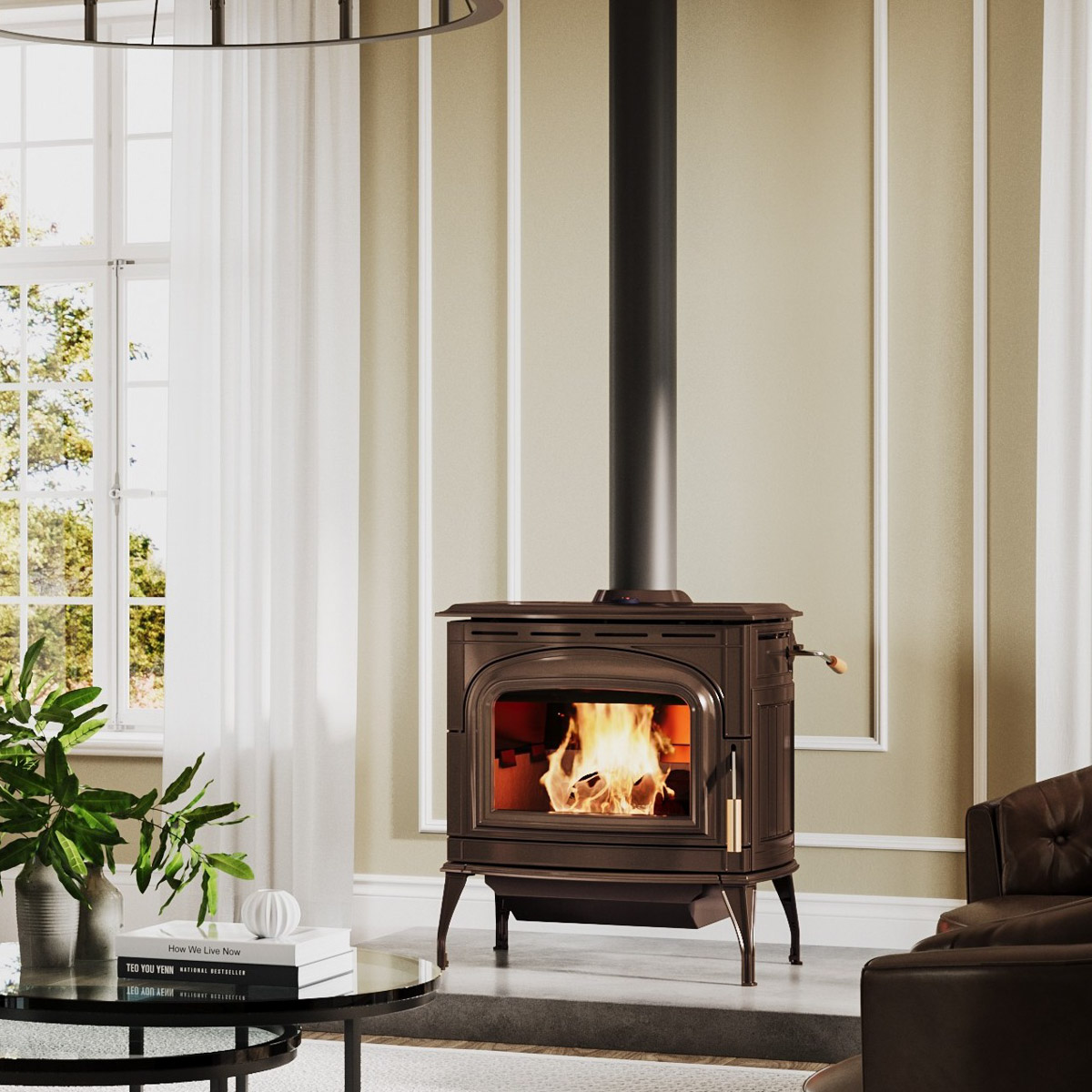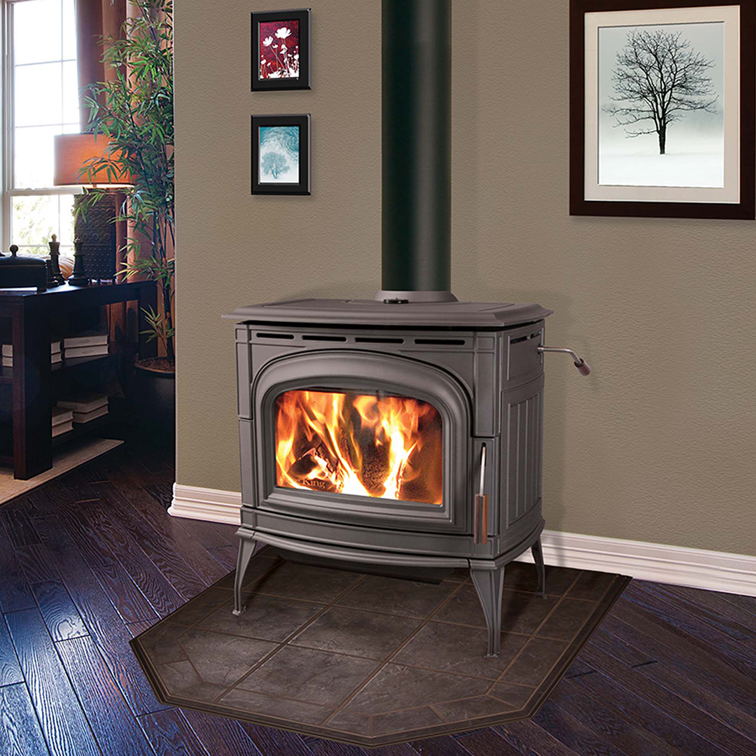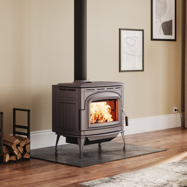 Our craftsmen used the timeless medium of cast iron to create a beautiful and elegant piece of furniture with detailed relief and curves. The Ashford is available in: Metallic Black or Cast Gray paint finishes and Chestnut Brown Porcelain Enamel finish. Burled walnut is carved for the door and bypass handles. This creates a luxurious feel every time you use your stove. The adjustable, dual action door latch has a positive lock feel and is easy to operate. The Ashford 30 includes Standard Ash Drawer which is mounted on Easy Glide runners with a removable Ash Pan and Lid.