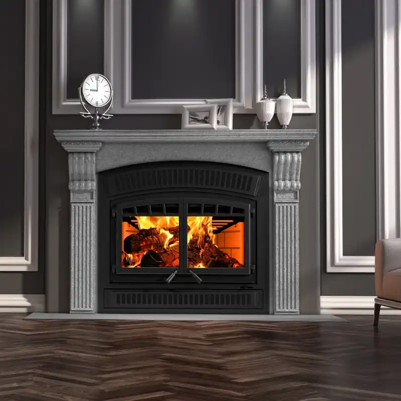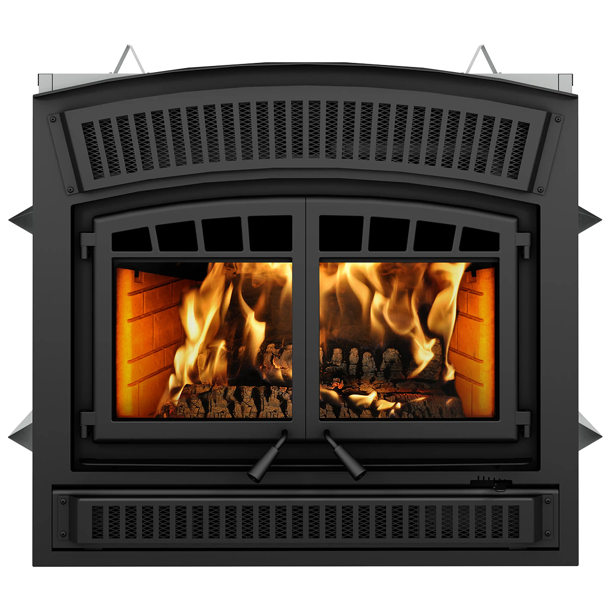 - Glass airwash system for a cleaner view of the flames