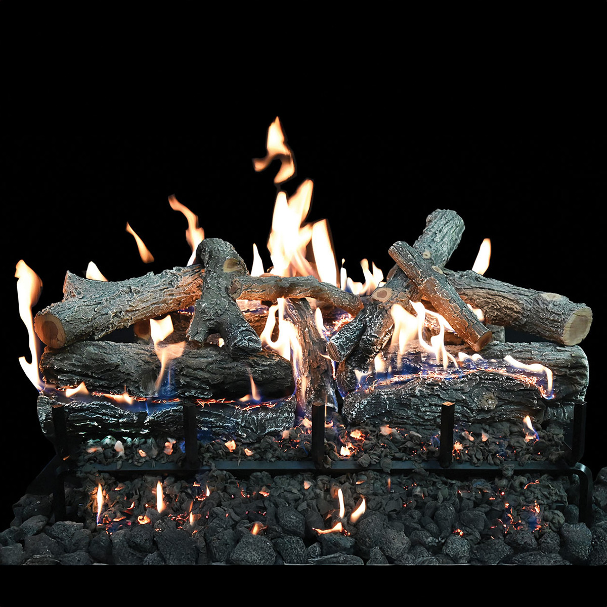 The revolutionary technology present ultra-realistic style and design to the traditional gas log set. GlowFire™ log technology also allows for increased efficiency by using less BTU’s and creating a fuller more robust flame effect. The ceramic refractory logs radiate more heat out into the room compared to a traditional concrete gas log set. Available in 4 convenient sizes, gas specific construction, and available with either on/off or variable flame electronic controls. The Lava burner series and GlowFire™ log technology has created a platform for endless log style and future configuration development.